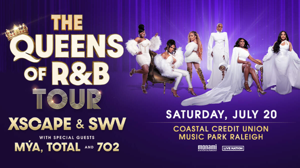 🤩🎤 XSCAPE and SWV are bringing THE QUEENS OF R&B TOUR to Coastal Credit Union Music Park Raleigh Saturday 7/20 with special guests Mýa, Total and 702!